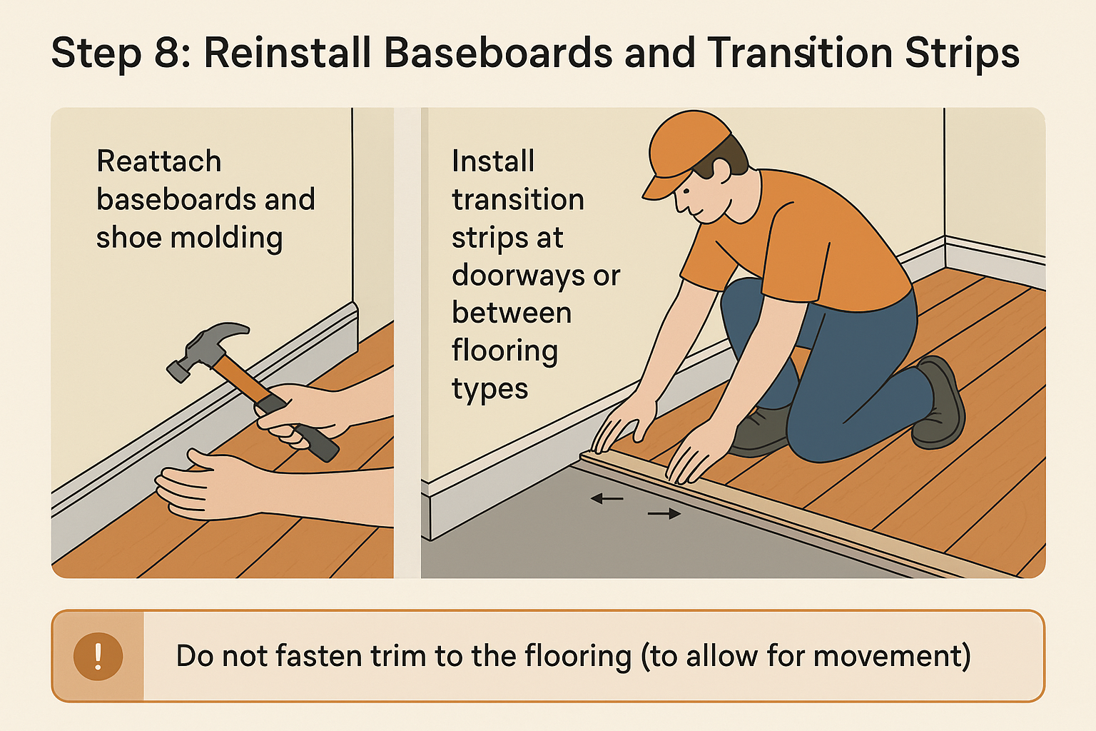 Step 8: Reinstall Baseboards and Transition Strips